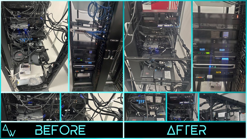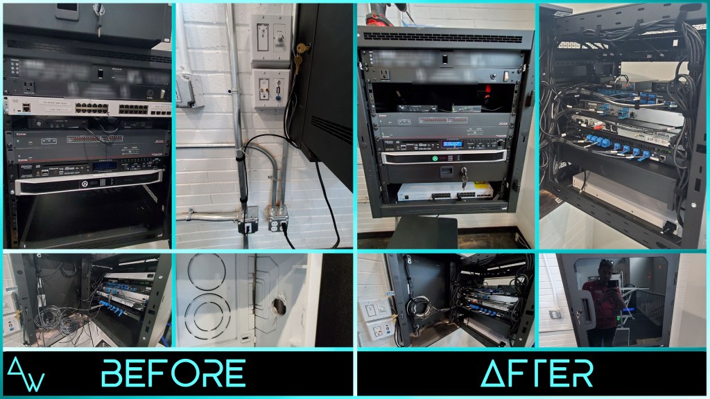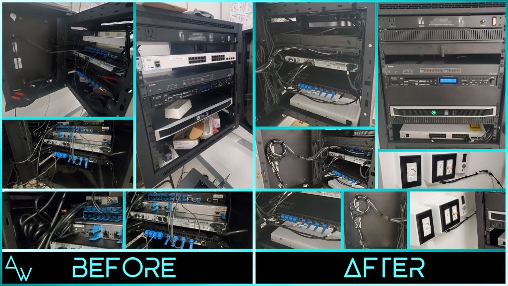 Here are some A/V racks we’ve taken over and cleaned up, alongside some we built from scratch:
