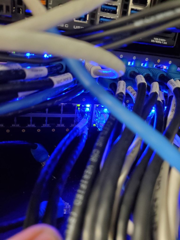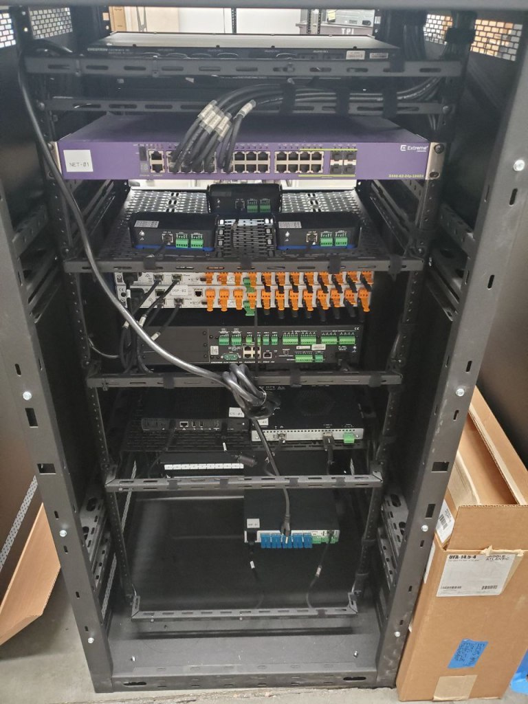 After: Cables Labeled / Screws Added and Replaced / Cable Management Without Rack Rails or Lacing Bars